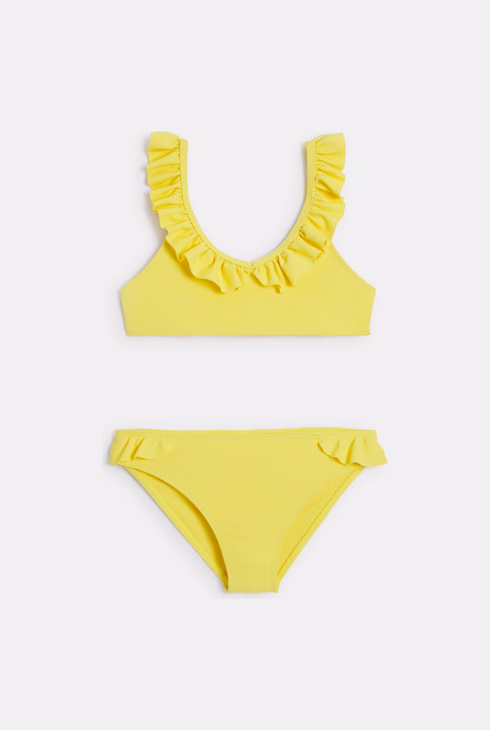 2-teiliger Badeanzug in Gelb mit Volants für Mädchen
