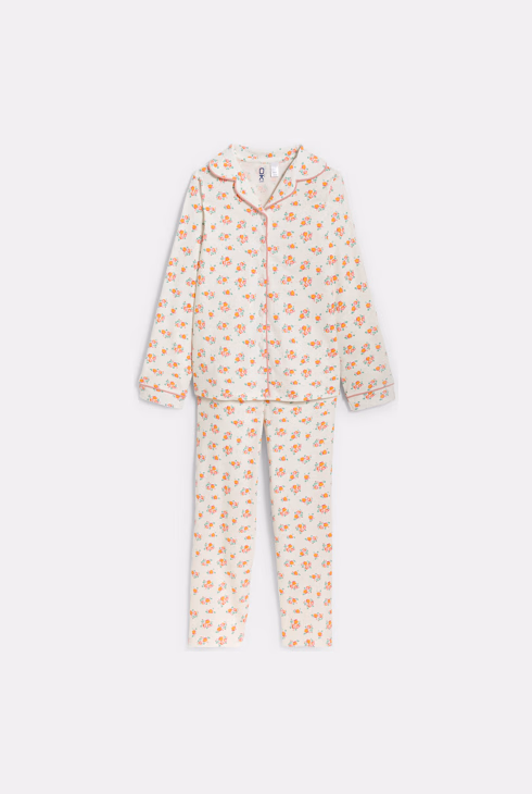 2-teiliger orangefarbener Pyjama aus geblümtem Jersey Mädchen