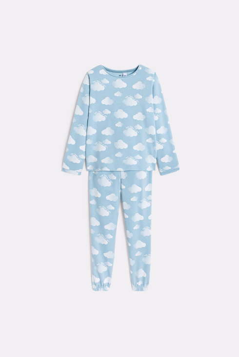 2-teiliger Pyjama Molton Wolkenmotiv himmelblau Mädchen