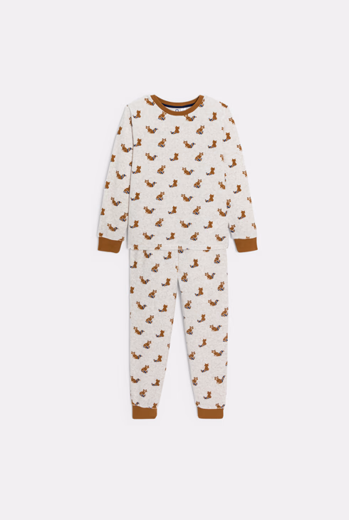 2-teiliger Schlafanzug Samt Waschbär-Motiv beige Jungen