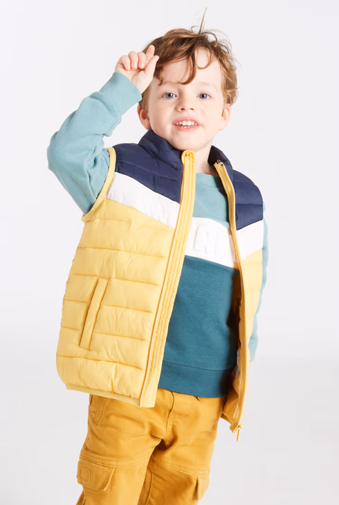 Ärmellose Steppjacke mit Colorblock Gelb Jungen