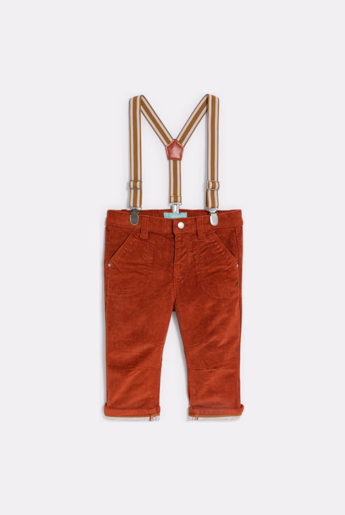 Baby-Hose aus Cordstoff in Orange mit Hosenträgern für Jungen