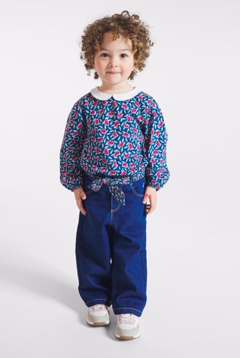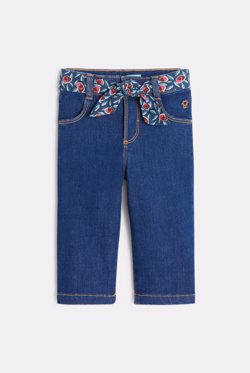 Baby-Jeans mit blauem breitem geblümtem Gürtel für Mädchen