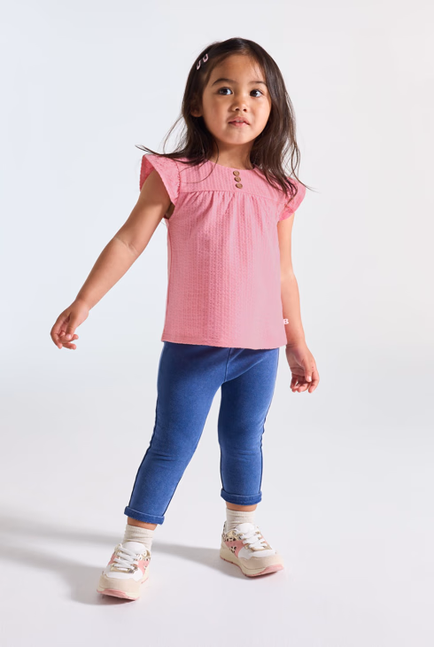 Bedruckte rosa Bluse aus Seersucker-Baumwolle Kleinkind Mädchen