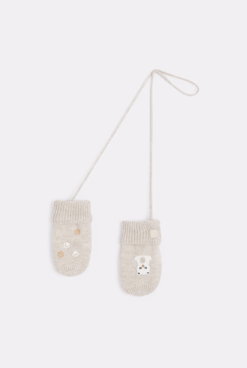 Beige Strickfäustlinge mit Fleecefutter und Tiermotiv Kleinkind Junge