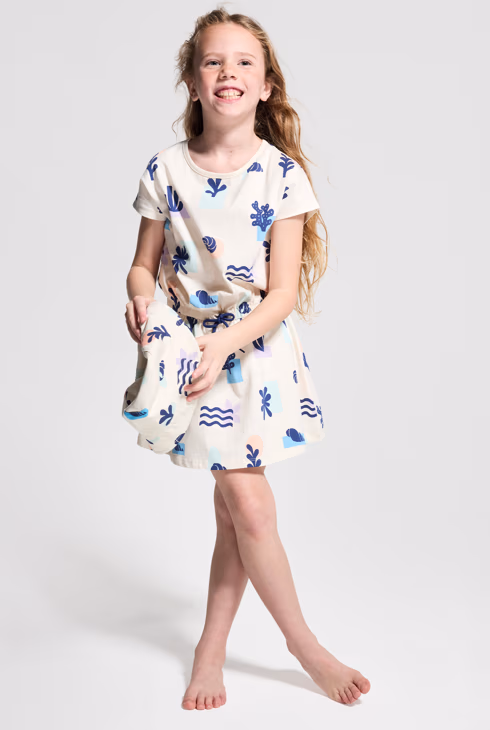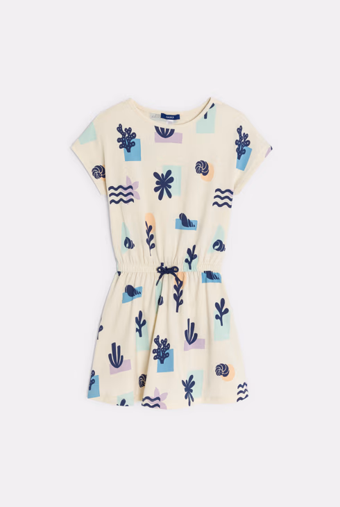 Beiges Sommerkleid aus bedrucktem Jersey für Mädchen