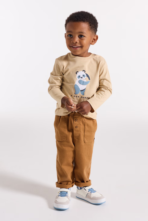 Beiges T-Shirt Tiermotiv Kleinkind Junge