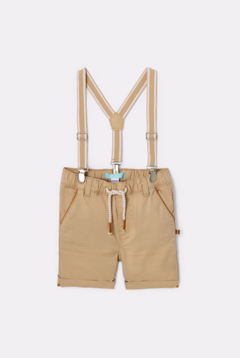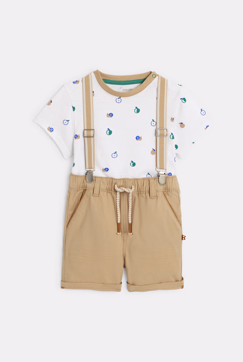 Bermuda-Shorts mit Trägern und T-Shirt beige Kleinkind Junge