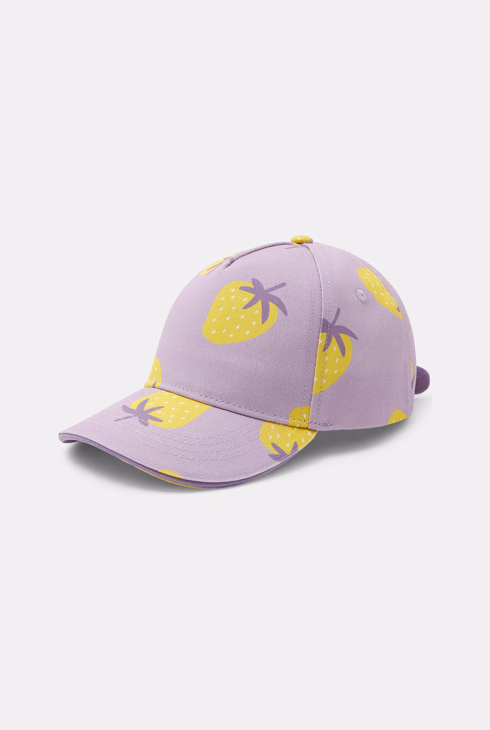 Blasslila Cap mit aufgedrucktem Erdbeermotiv für Mädchen
