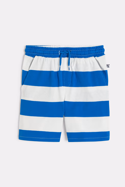 Blaue Bermuda-Shorts aus weichem, gestreiftem Molton für Jungen
