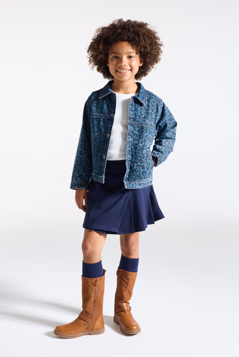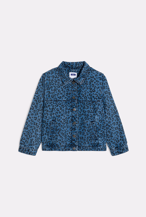 Blaue Jeansjacke mit Leopardenmuster für Mädchen