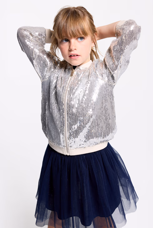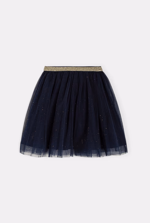 Blauer Rock aus plissiertem Tüll mit Paillettenbesatz für Mädchen