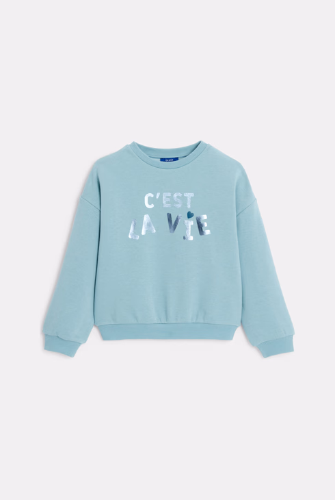 Blaues Sweatshirt mit metallischem Schriftzug für Mädchen