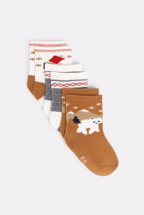 Braune Baby-Socken mit Winterthema für Jungen (3er-Pack)