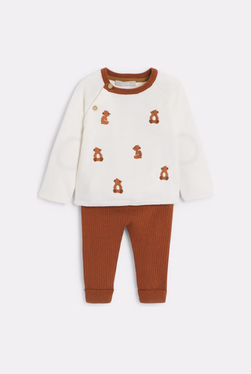 Brauner Strickpullover mit Bärenmotiv und Hose Kleinkind Junge