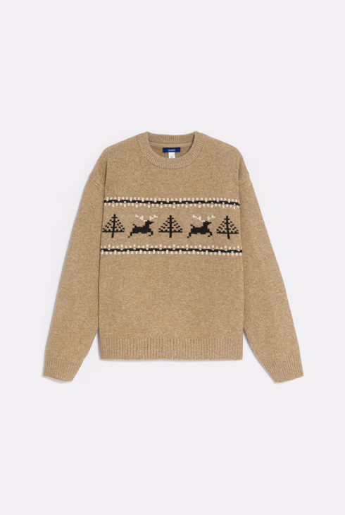 Dunkelbeiger Pullover mit skandinavischem Muster Jungen