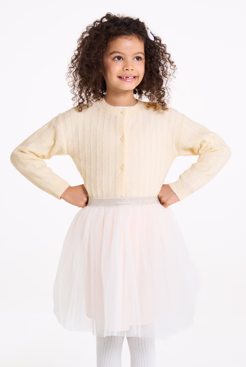Ecrufarbene Strickjacke mit Lochmuster für Mädchen