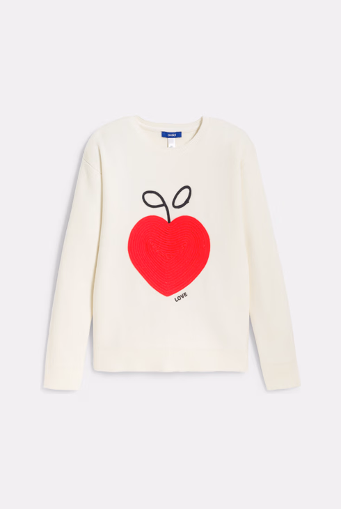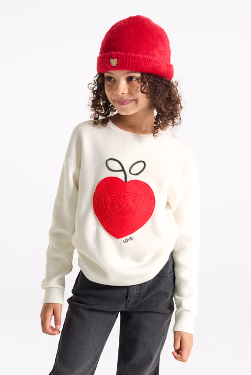 Ecrufarbener Pullover mit Strickmotiven Mädchen