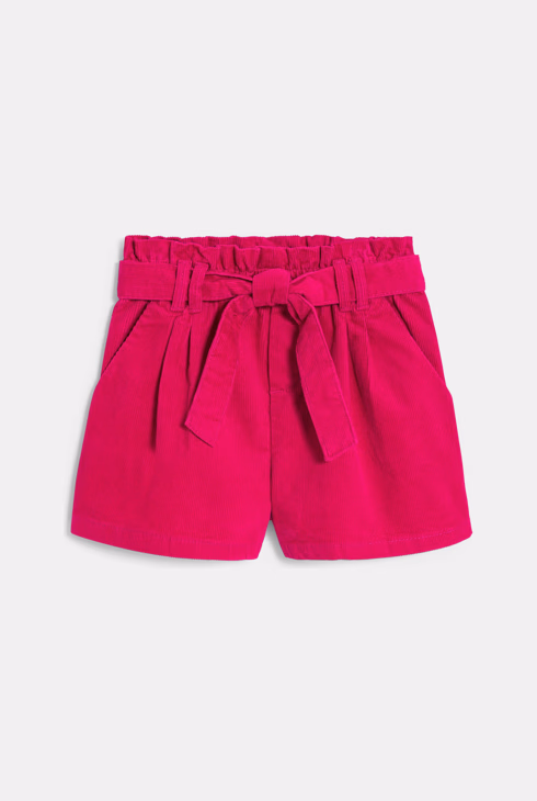 Einfarbige Shorts aus rosa Cordstoff mit Gürtel für Mädchen