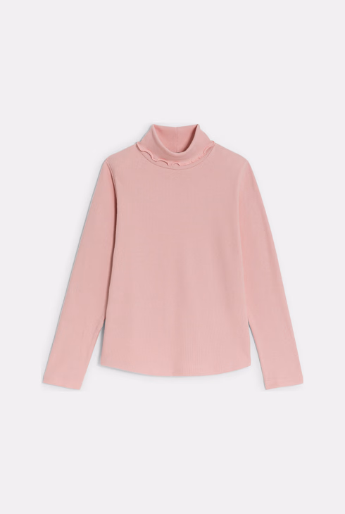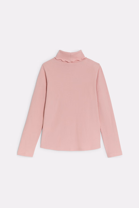 Einfarbiges rosa Rippen-T-Shirt mit Rollkragen