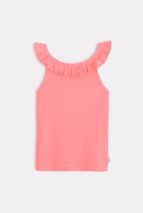 Einfarbiges Tanktop mit Rüschenausschnitt Rosa Mädchen