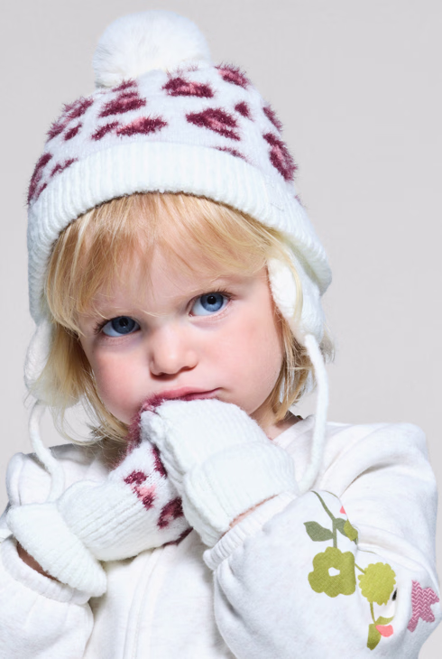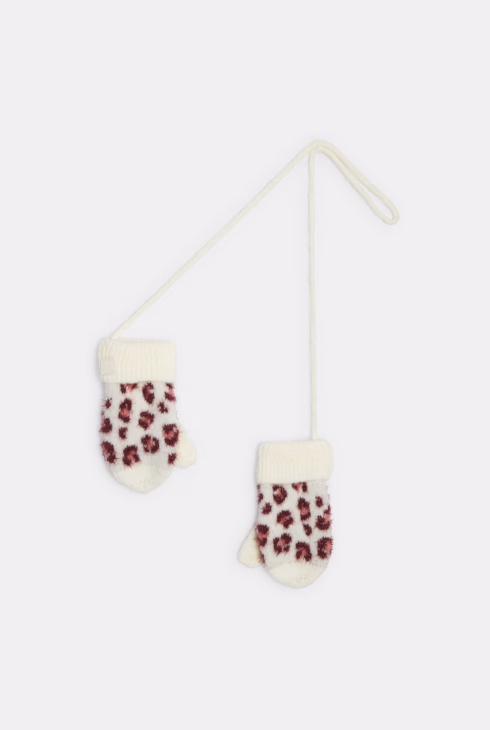 Fäustlinge aus Leopardenstrick in Rosa für kleine Mädchen
