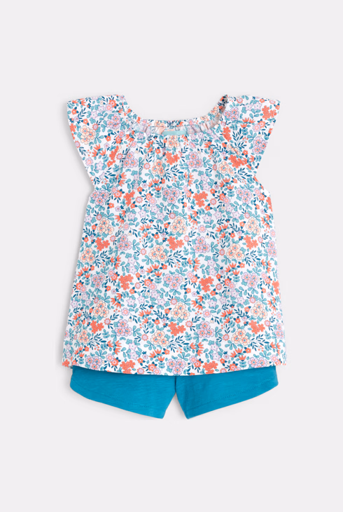 Geblümte Baby-Bluse und Shorts in Blau für Mädchen