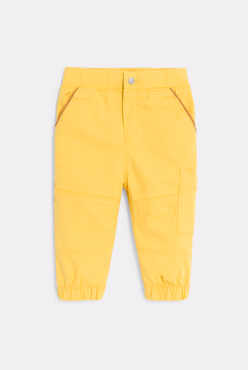Gelbe, unten verengte Hose aus verspielter Baumwolle Baby Jungen