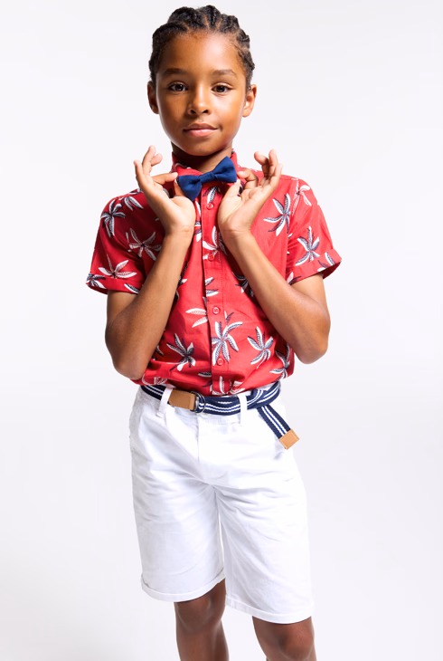 Gemusterte Stretch-Bermuda mit Gürtel Weiß Jungen