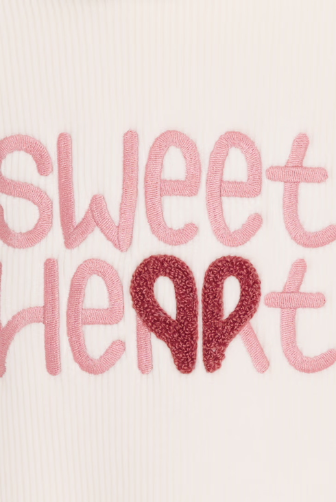 Geripptes Kapuzensweatshirt mit gestickter Botschaft in Weiß für Mädchen