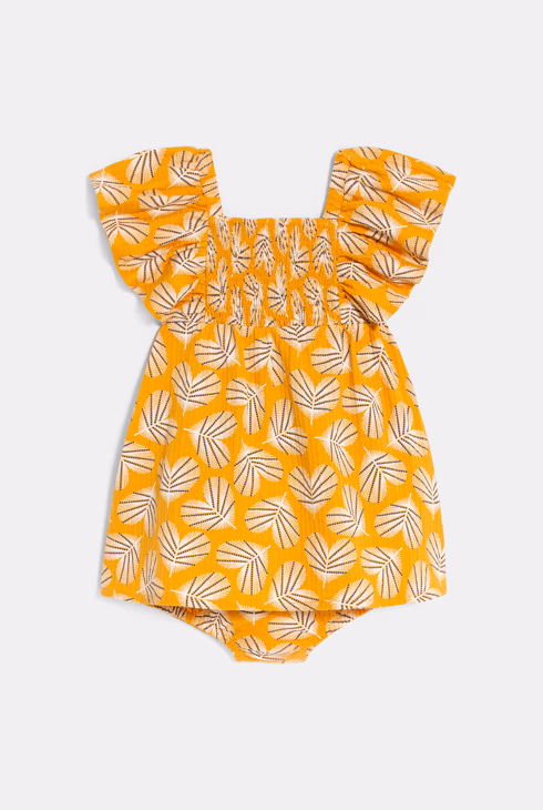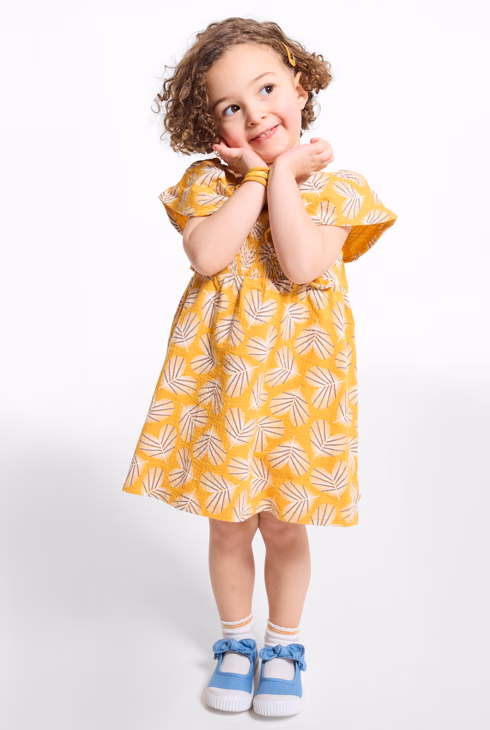 Gesmoktes gelbes Kleid aus verspielter Baumwolle Baby Mädchen