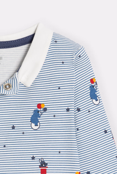 Gestreifter Interlock-Strampler in Blau mit Zirkusmotiv Baby Jungen