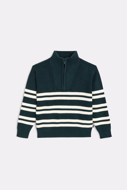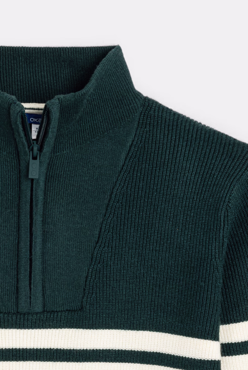 Gestreifter Pullover in Grün mit Troyer-Kragen für Jungen