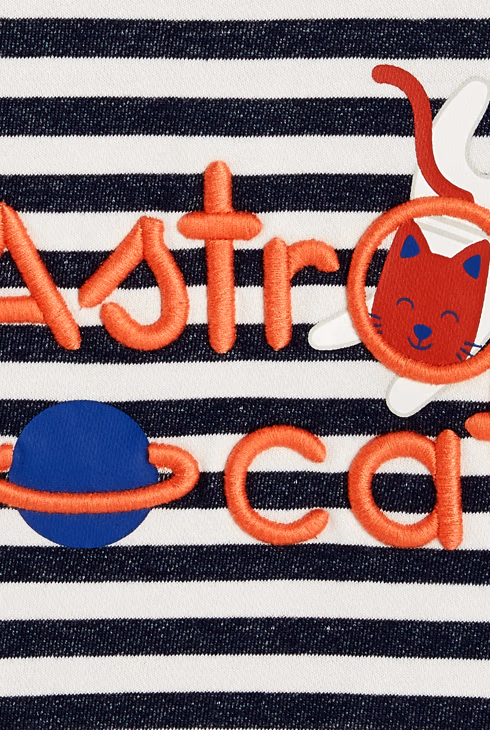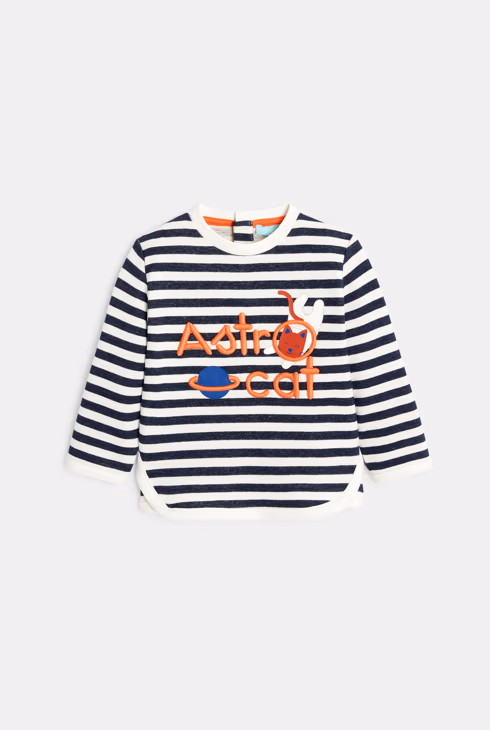 Gestreiftes Baby-Sweatshirt aus Molton mit Astronautenkatze, blau, Jungen