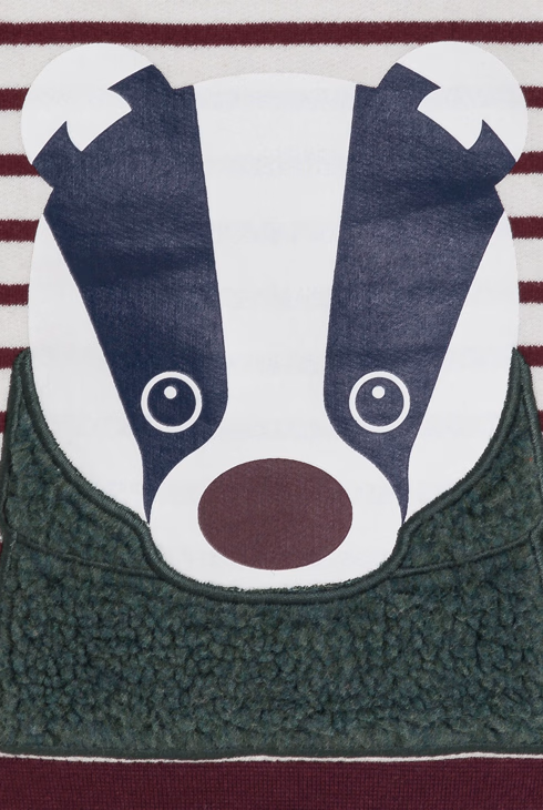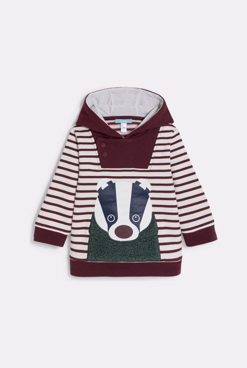 Gestreiftes Baby-Sweatshirt mit Kapuze und Dachsmotiv für Jungen