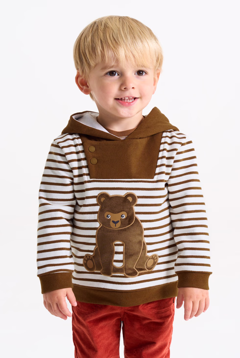 Gestreiftes Sweatshirt mit Kapuze und Bärenmotiv Kleinkind Jungen