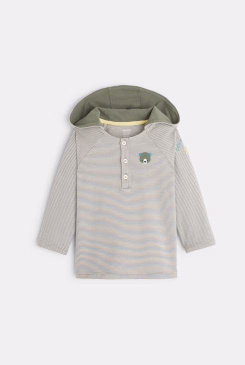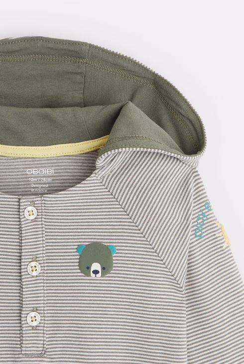 Gestreiftes T-Shirt mit tunesischem Kragen und Kapuze Weiß Baby Jungen