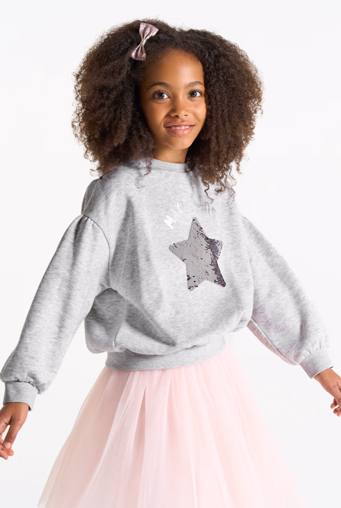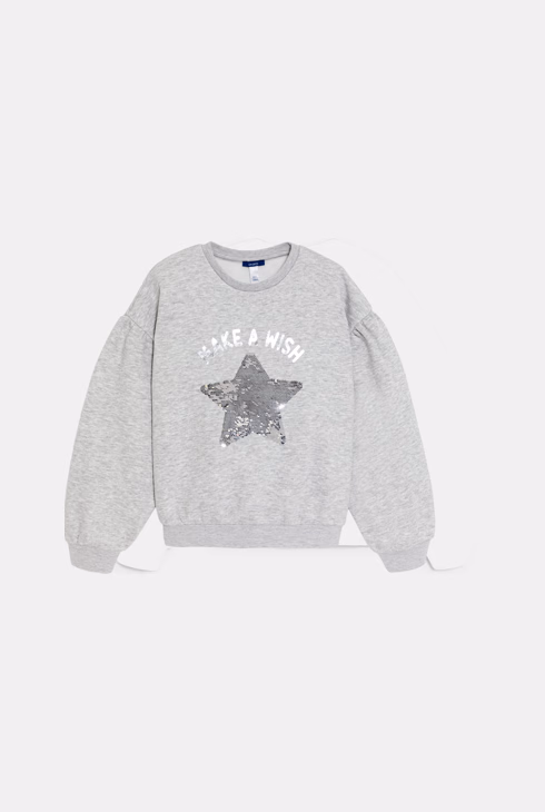 Grau meliertes Sweatshirt mit Zauberpailletten für Mädchen