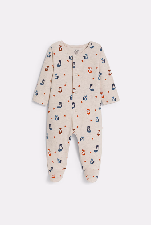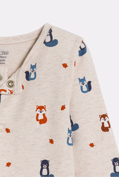 Grauer Strampler aus Molton mit Waldtieren Baby Jungen