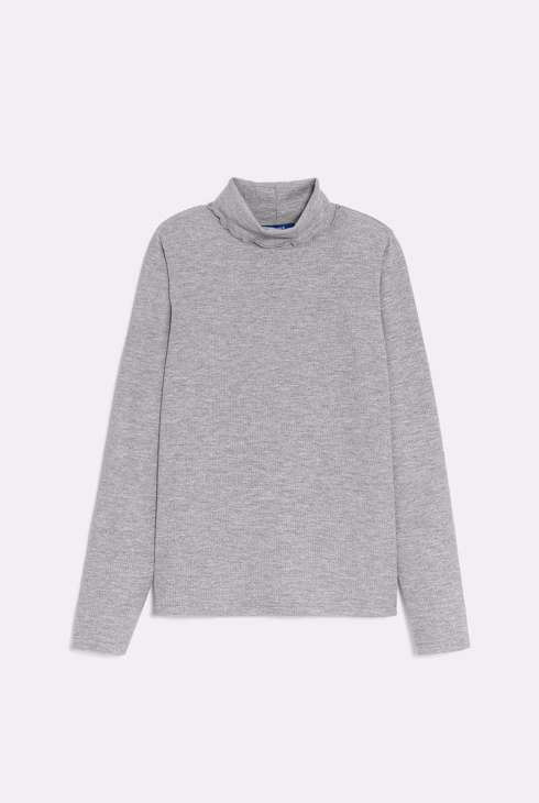 Graues geripptes T-Shirt mit Rollkragen für Mädchen