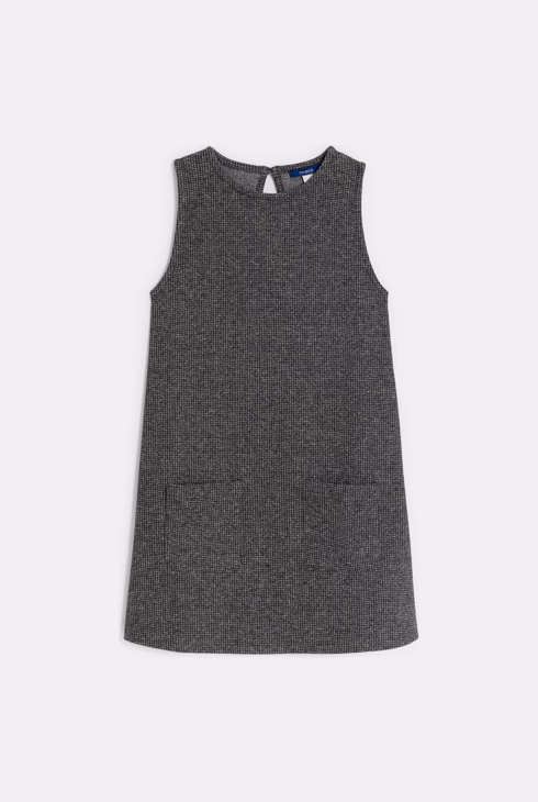 Graues Trägerkleid mit kleinen Karos für Mädchen