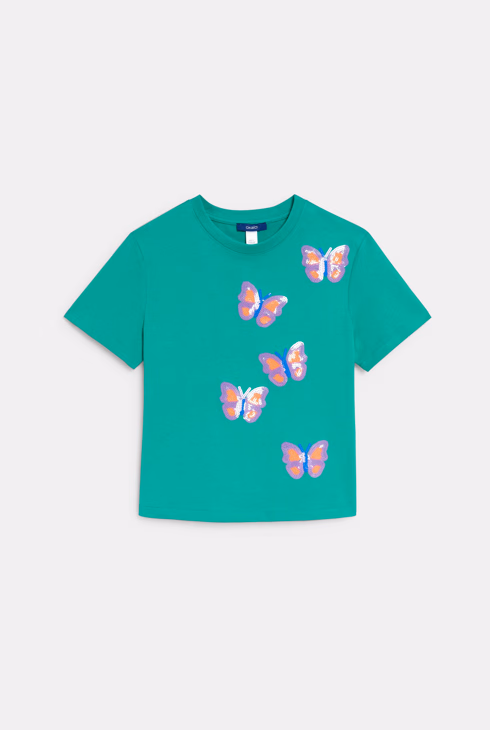 Grünes Kurzarm-T-Shirt mit Pailletten für Mädchen