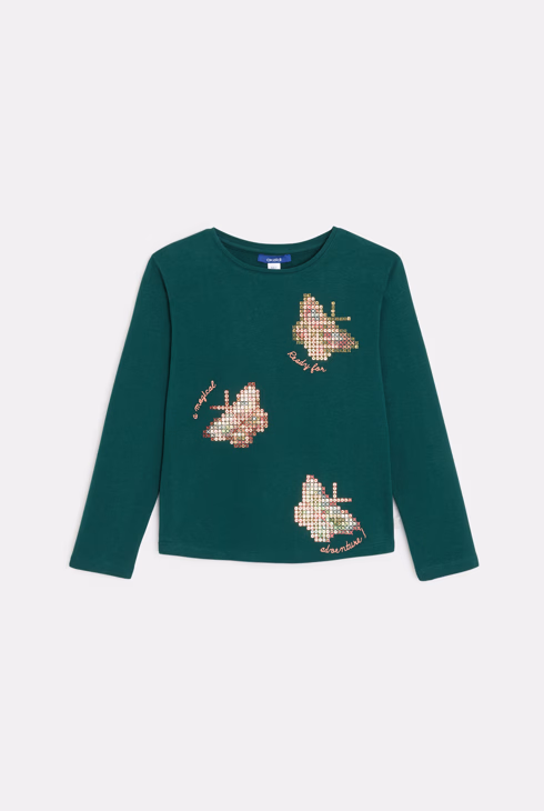 Grünes Langarm-T-Shirt mit Schmetterlingen für Mädchen