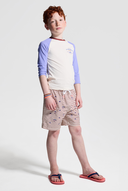 Ihr Kind kann sich auch für diese bequeme Art von Badebekleidung entscheiden. Entdecken Sie Modelle mit Streifen, Segelbooten, Palmen, Surfbrettern, Sonnenbrillen und vielem mehr. Badebekleidung, die sowohl im Schwimmbad als auch am Meer getragen werden kann.