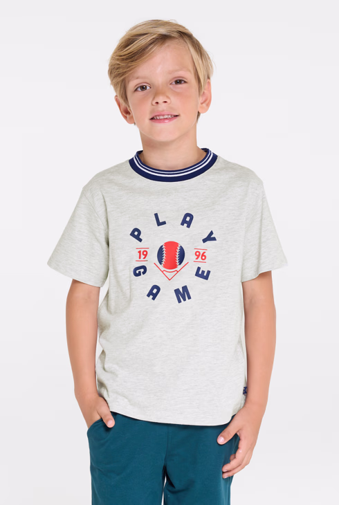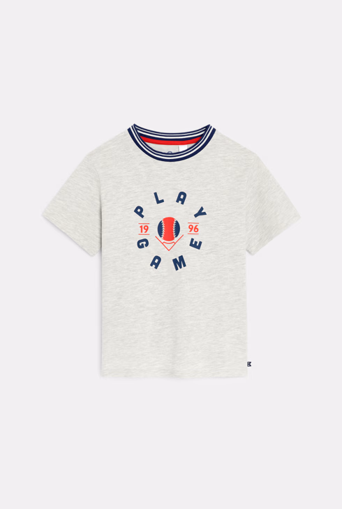 Kurzarm-T-Shirt mit Schriftzug grau meliert Jungen