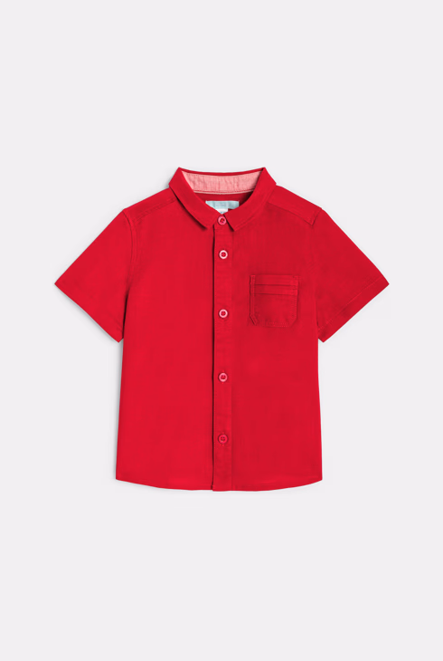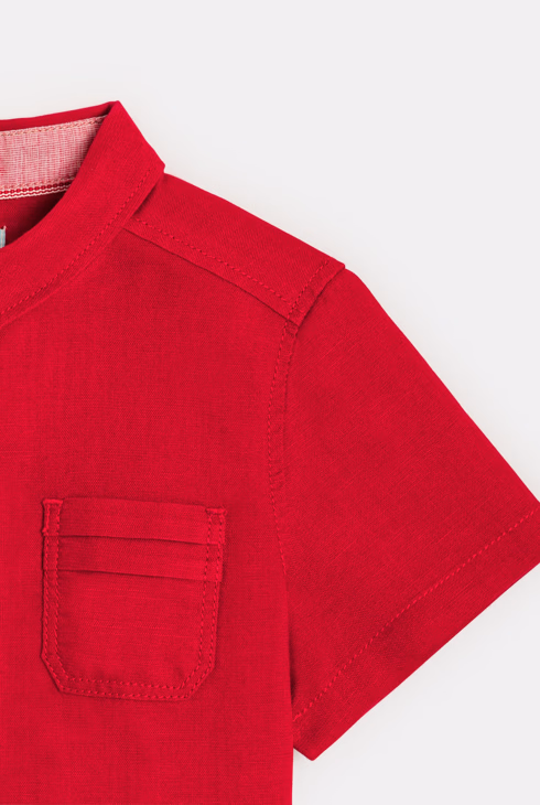 Kurzärmeliges Babyhemd aus Baumwolle und Leinen in Rot für Jungen