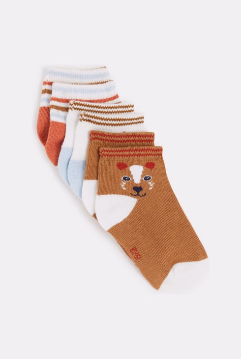 Kurze Babysocken in Braun mit Bärenmotiv für Jungen (3er-Pack)