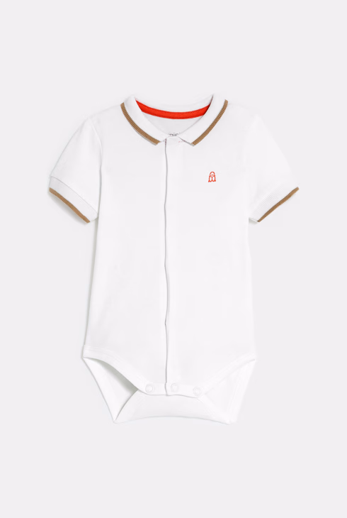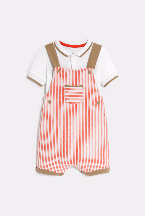 Kurze gestreifte Baby-Latzhose aus Molton und roter Body für Jungen