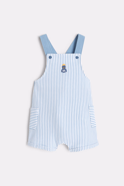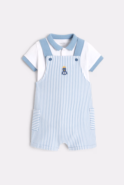 Kurze gestreifte Latzhose und Body mit Polokragen Blau Geburt