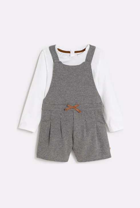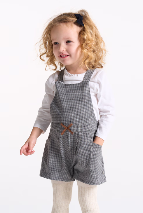 Kurze modische Latzhose und T-Shirt grau Kleinkind Mädchen